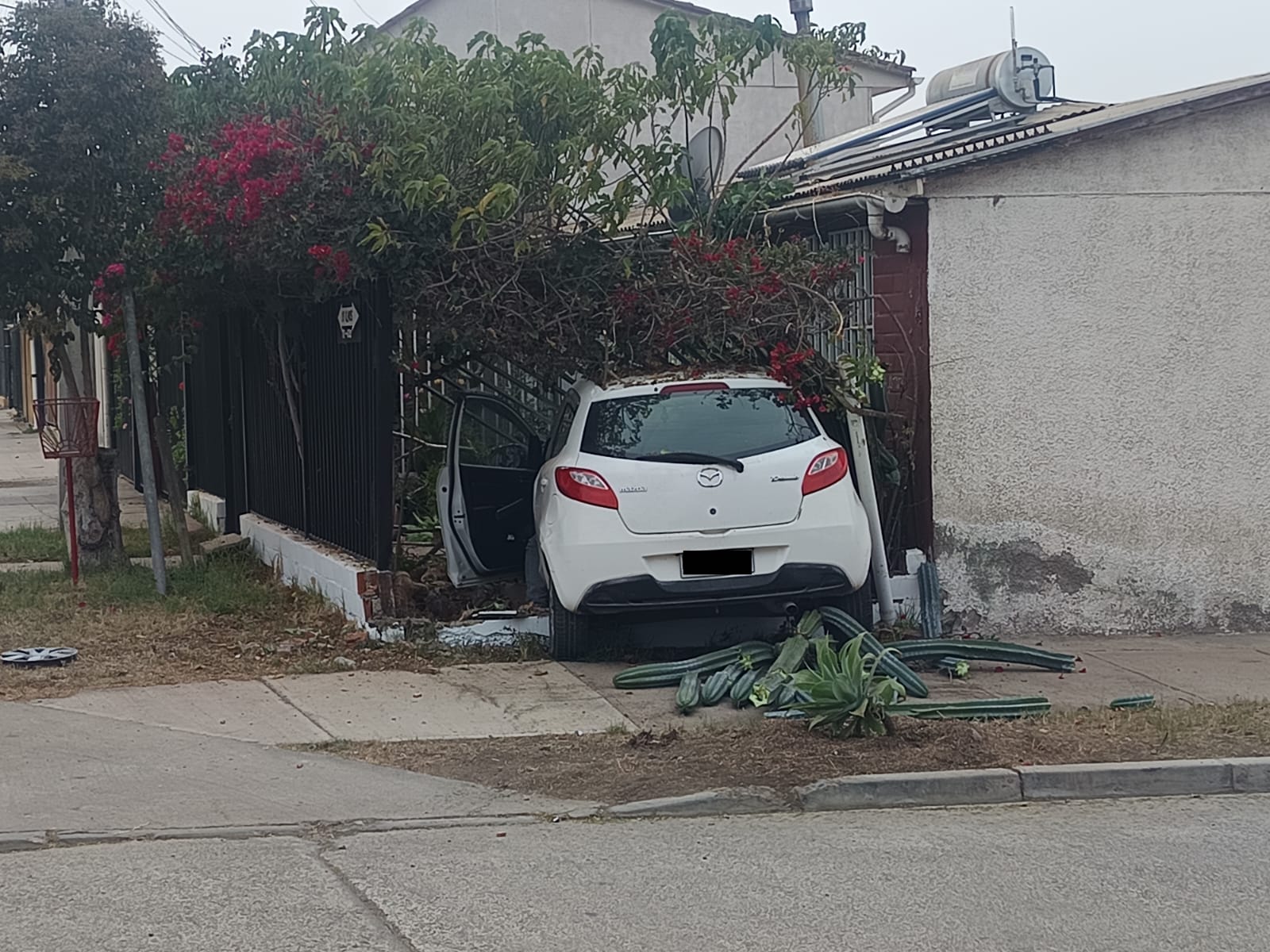 Según el relato de los afectados, el conductor del móvil marca mazda placa patente única KG KV 46—quien presentaba evidentes signos de haber ingerido alcohol— perdió el control del vehículo, estrellándose contra la propiedad donde residen un adulto mayor y su hijo. Tras el impacto, y lejos de prestar ayuda o hacerse responsable de los daños, el sujeto abandonó el lugar con rumbo desconocido.
