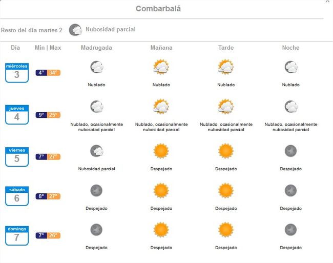 Pronóstico de la Dirección de Meteorología de Chile para Combarbalá