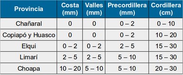 “Las provincias de Limarí y de Choapa se verían afectadas durante el día lunes 24, la provincia de Elqui sería afectada durante los días lunes 24 y martes 25. Finalmente en Atacama el sistema afectaría sólo durante el martes 25”.