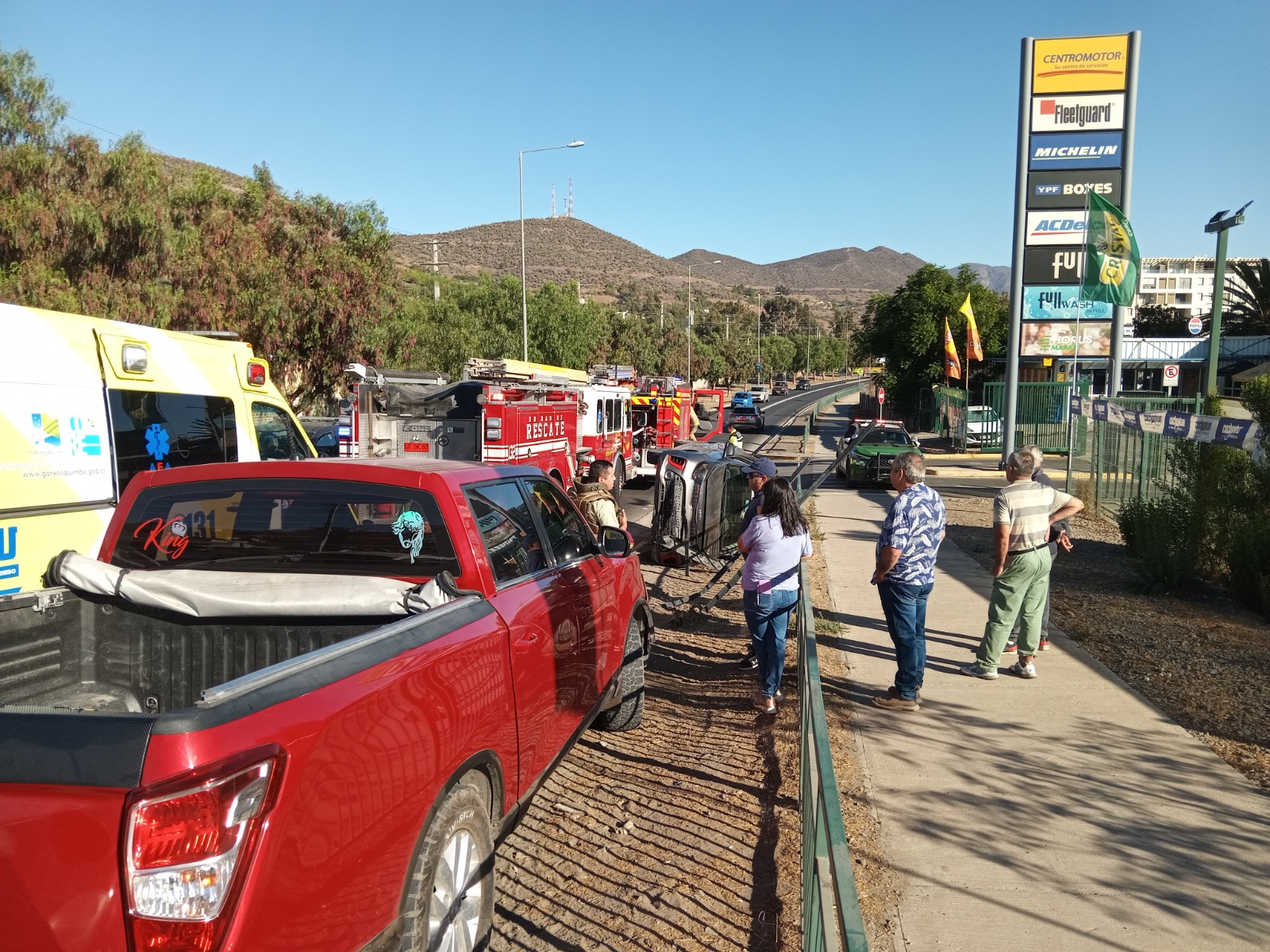 Colisión en la Circunvalación de Ovalle deja un vehículo volcado