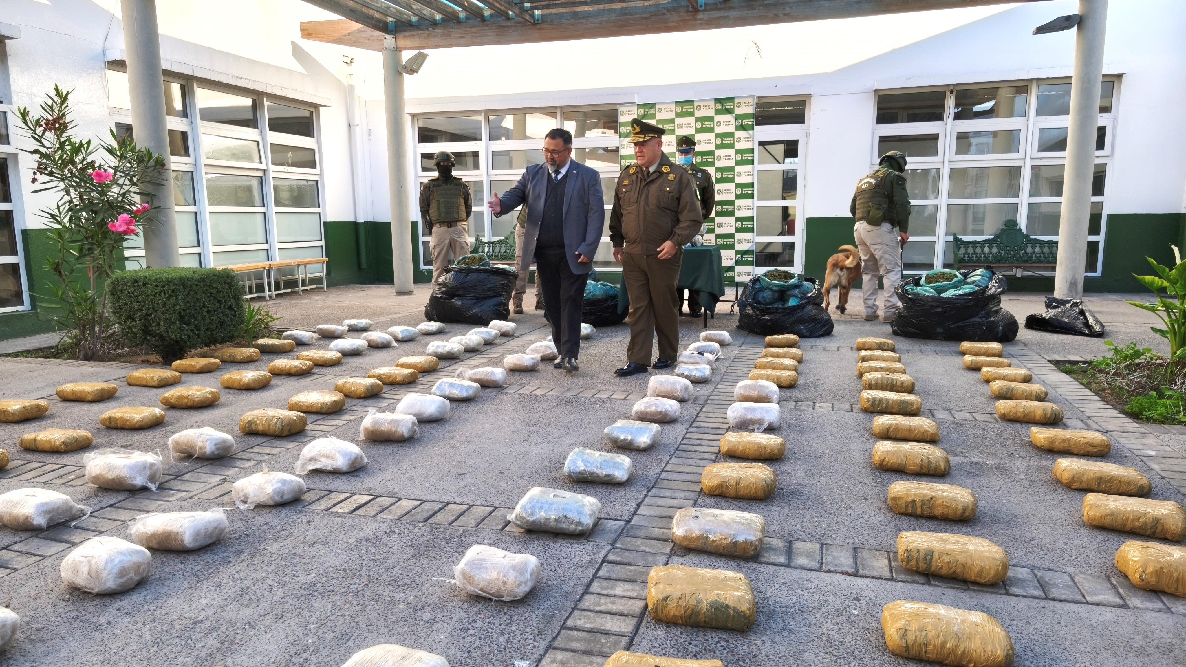 «Hemos estado siendo ayudados técnicamente con equipos especializados, principalmente con la ayuda de tecnología, escáner de alta precisión que nos permite verificar a través de niveles de opacidad qué elementos se encuentran al interior de algunos vehículos. Esto lo estamos aplicando principalmente en las rutas, no solamente en la Ruta 5, sino que en otras rutas también de la región. Y además nuestra ayuda invaluable que dice relación con la utilización de canes policiales detectores de droga, como Kairo y Baco, los cuales han sido una vez más un apoyo muy importante para el trabajo que realiza Carabineros de Chile», explicó el General.