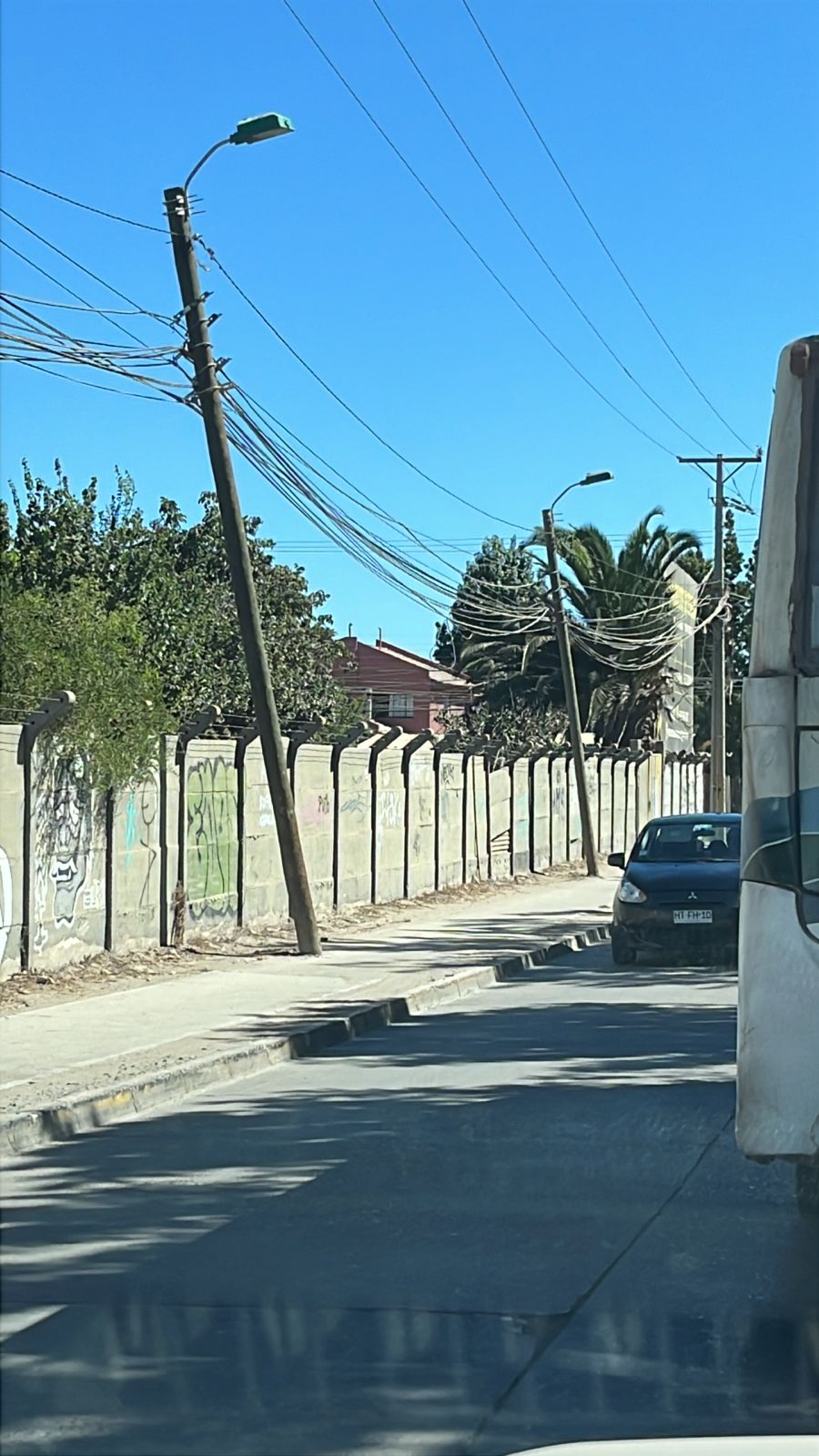 Una profunda preocupación manifesta un ciudadano que transita diariamente por el tramo final de la calle Independencia, específicamente en la parte posterior del supermercado Santa Isabel, a pasos de la intersección con calle Mirador. La alerta se debe al avanzado estado de inclinación de los postes del tendido público, situación que, según denuncian, representa un riesgo latente para peatones y automovilistas.