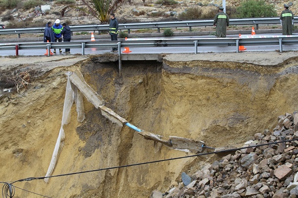 Una de las principales contingencias ha sido el socavón en el sector El Panul en la salida sur de la comuna de Coquimbo. Se trata de una erosión de aproximadamente 15 metros de largo, que producto de lo arcillosos de la tierra y la acción de riachuelos al borde de la carretera, ha corroído el suelo en su borde.