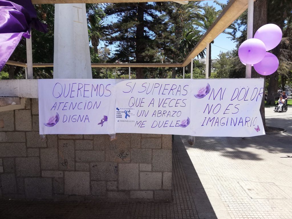 Un grupo de mujeres que padecen de esta enfermedad desconocida llegó al mediodía de ayer hasta la Plaza de Ovalle sumándose a la protesta que se hizo a nivel nacional pidiendo a las autoridades de salud ser incorporadas al Plan AUGE.