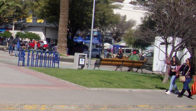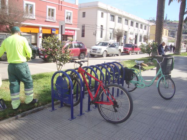 Cuando llegamos esta mañana a la Plaza de Ovalle descubrimos los mismos estacionamientos que el domingo estaban vacíos, con dos bicicletas con sus respectivas cadenas.